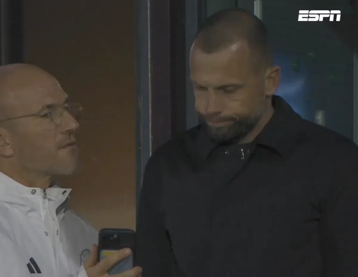 Beelden uit Amsterdam: Kroes toont telefoon aan Heitinga, Ajax-coach schudt hoofd